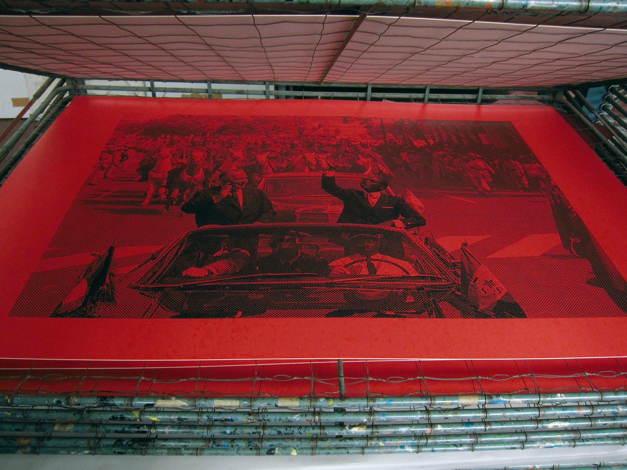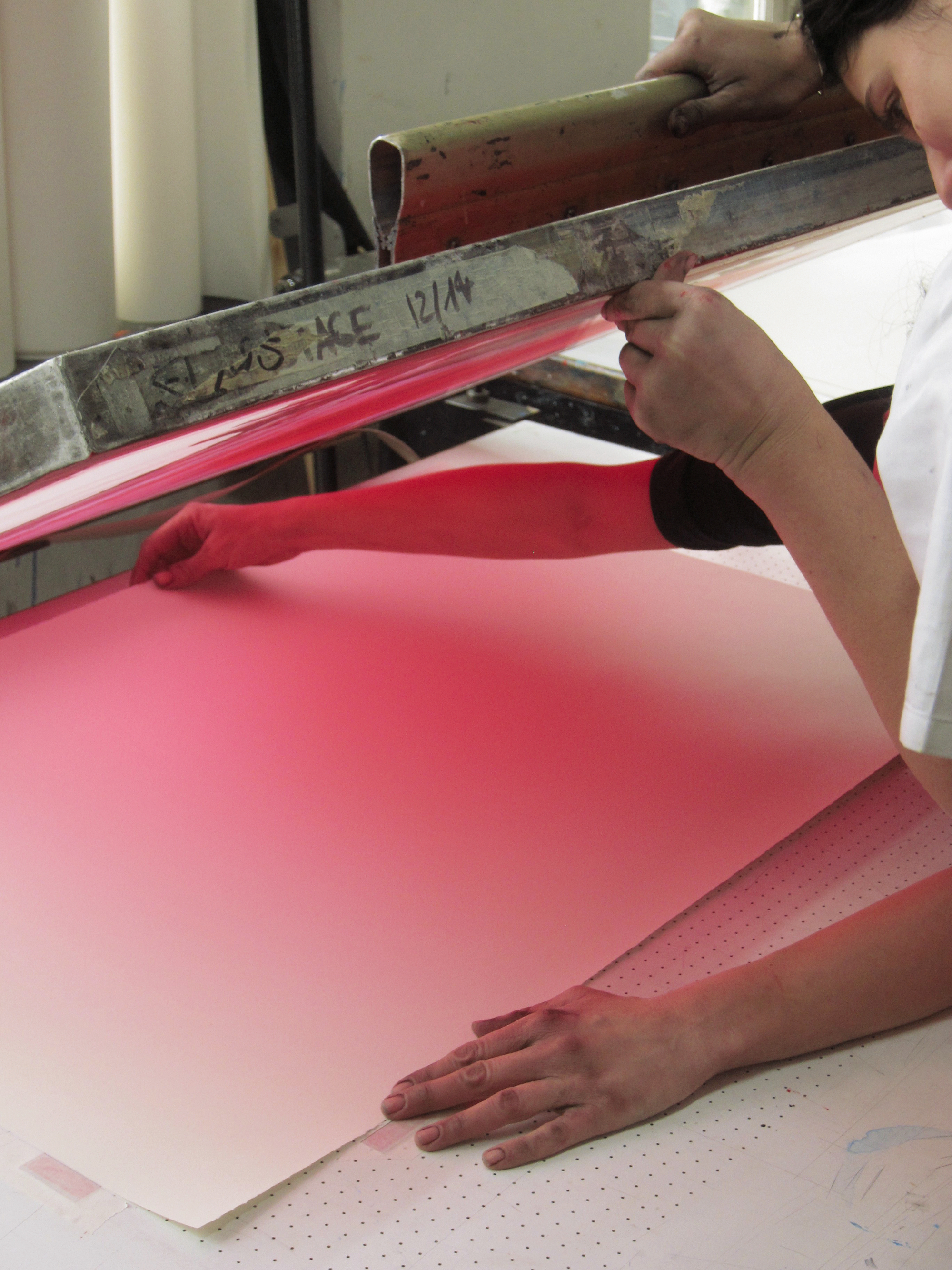 Images issues des activités de Swerve, zone de bifurcation entre artiste, enseignants et étudiants de La Cambre dans le cadre du projet Prospectus de Vincent Meessen et de son exposition solo au Centre Pompidou, 28 mars – 28 mai 2018. Avec Pierre Huyghebaert (Typo), Marianne Corté (Printmaking), les étudiantes Julia Lebrao Sendra (Printmaking) et Amelie Vancoppenolle (Typo).