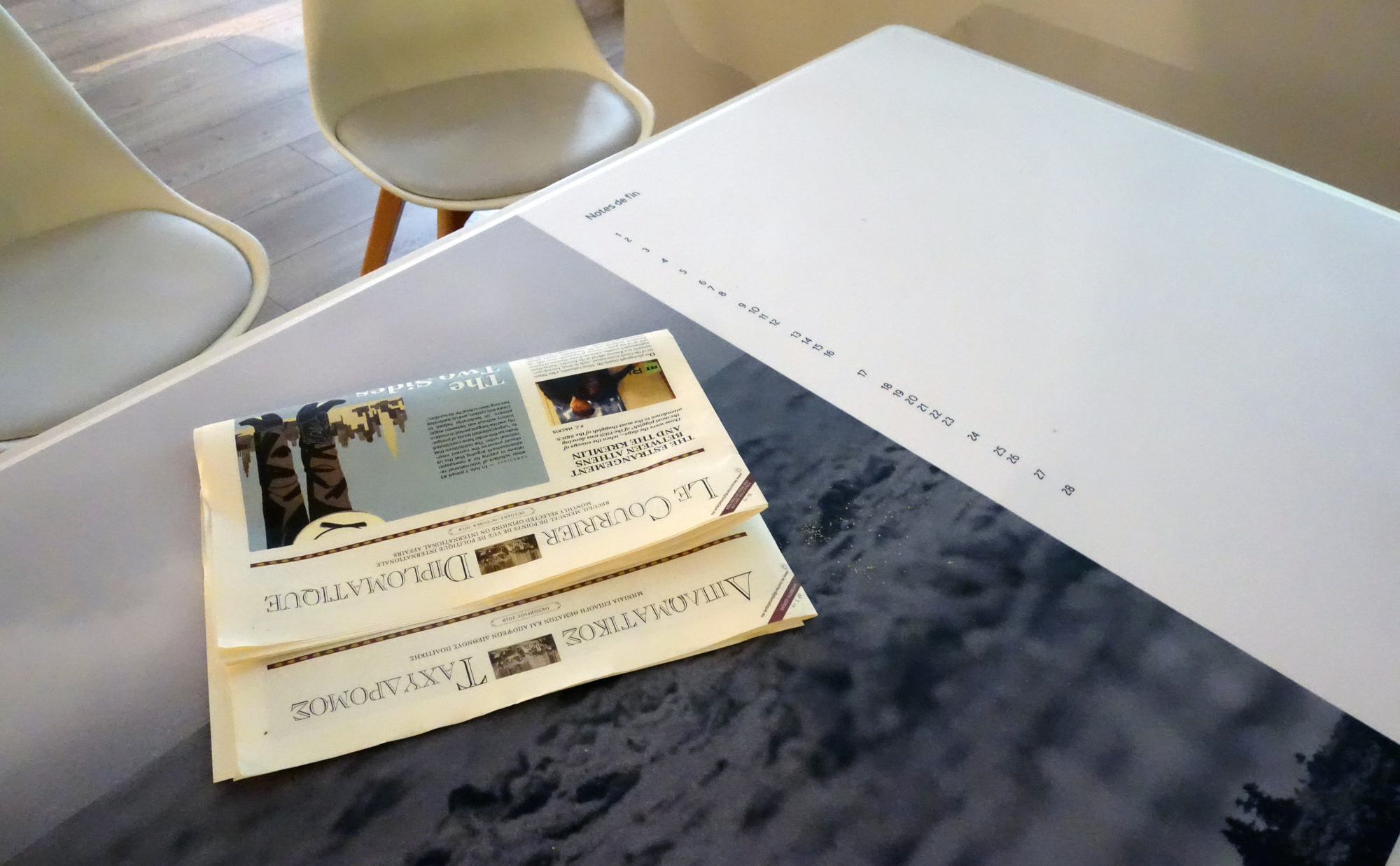 - notes de fin, photographic installation, Institut Français in Athens, 2018. Photo credit: Anne Penders.