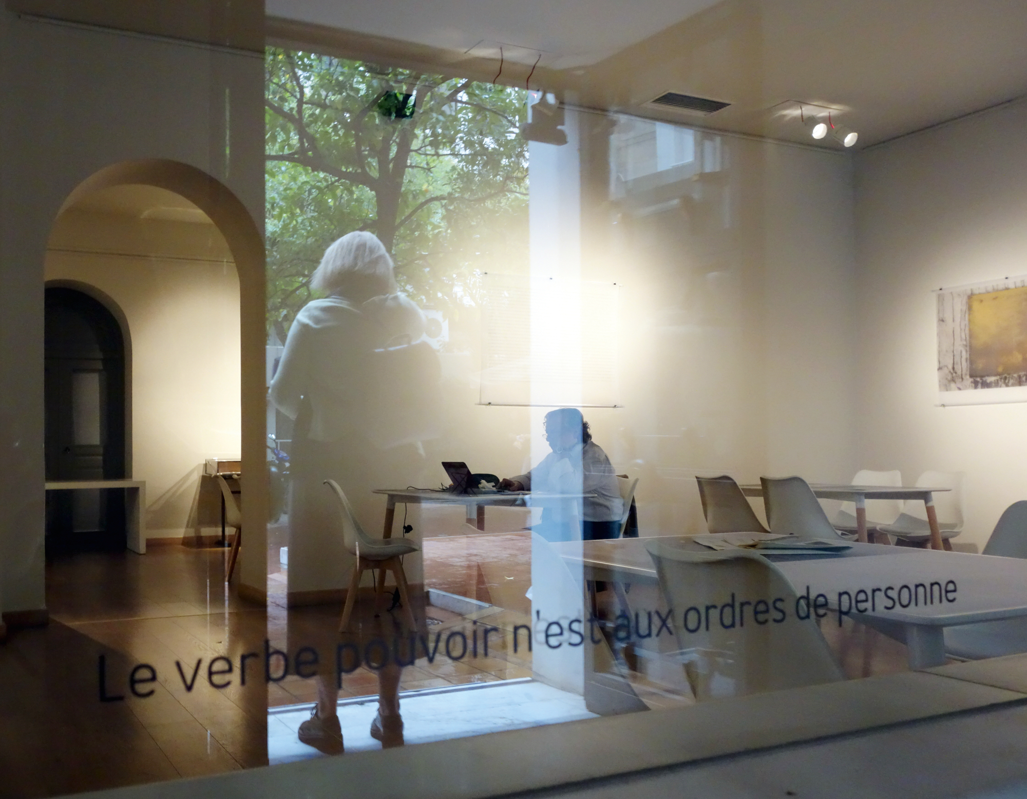 - le verbe pouvoir, text installation, Institut Français in Athens, 2018. Photo credit: Anne Penders.