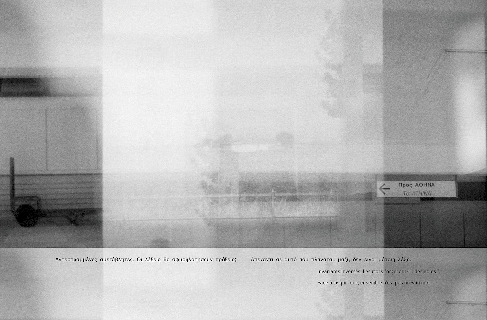 The author brought a literary translator (Anastasia Chavatza), a dramaturge (Barbara Demaret) and two actresses (Justine Lequette and Christina Dendrinou) into the fold. A polyphonic vocal adaptation of the texts (in French, Greek, English) combined with images and sounds collected from field recordings was presented in 2018 at the Institut français in Athens and at La Bellone in Brussels as part of the Midis de la Poésie program.