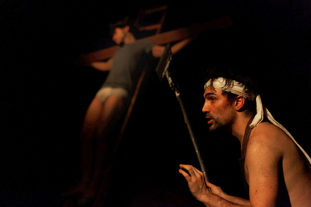 The four researchers began their work sitting together around the table, reading, studying and discussing Pasolini’s biography and theater works, the work of Antonio Gramsci, and the history of Italy, among many other topics. This enabled them to situate their material in its ideological, social, and cultural context. They then transitioned “to the stage” through a series of residencies, in which they were able to gradually iron out the various kinks of working together, ultimately arriving at a truly collective dynamic and common language.