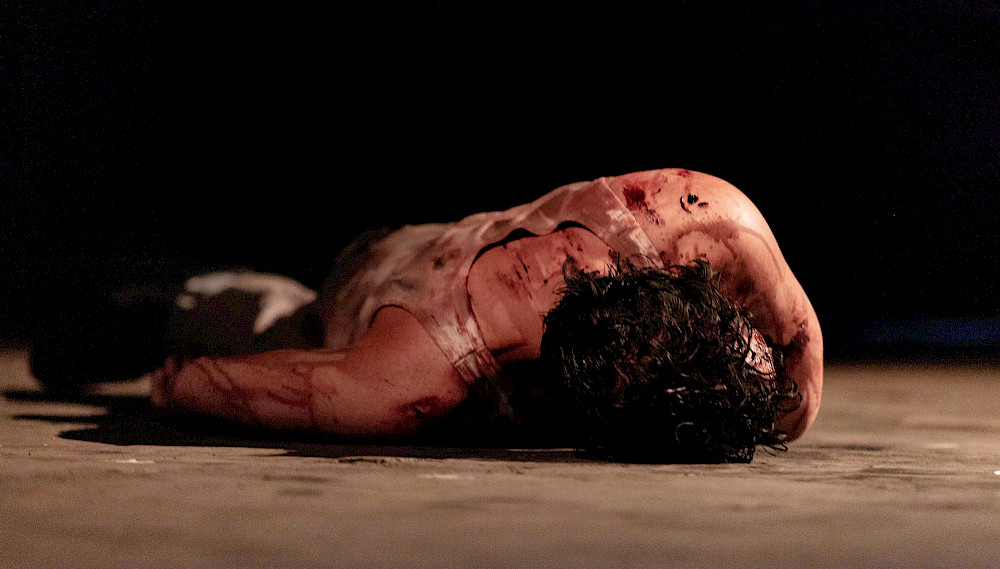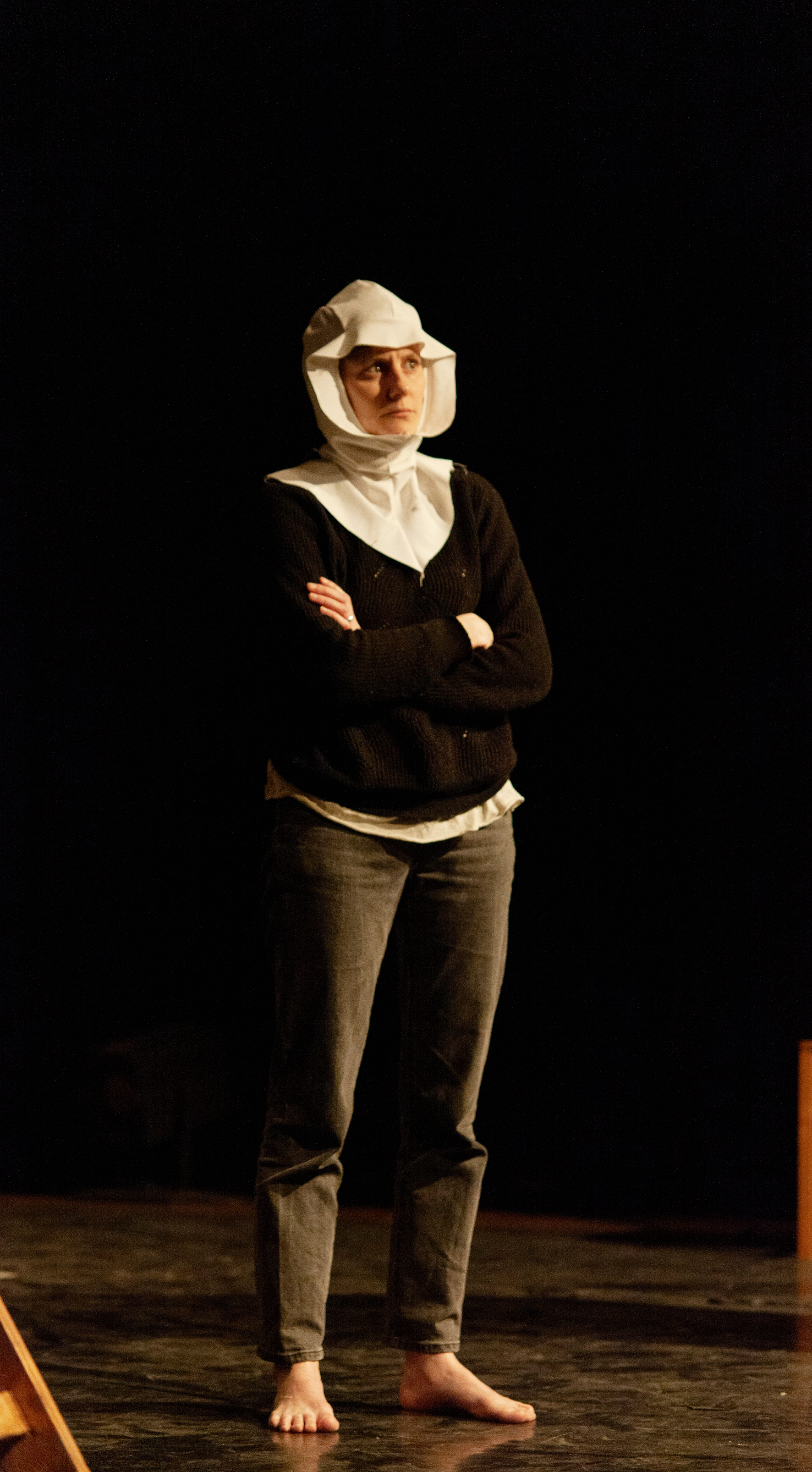 - Justine Lequette. Stage work during the residency at the Liège Theater, Rocourt, February 2020.Photo credit: Annah Schaeffer.