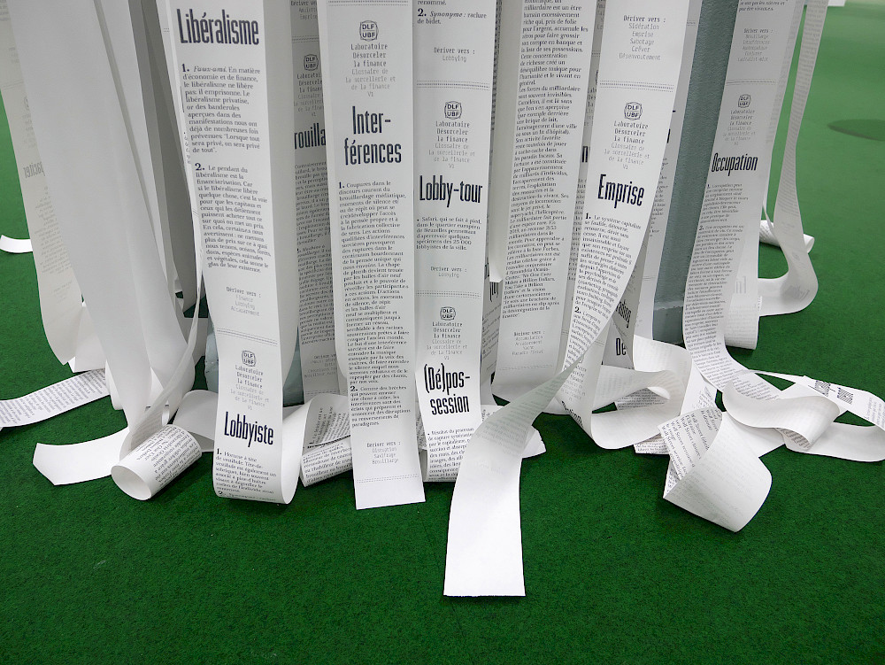 - Installation of the Glossary in the Cabinet of Economic Curiosities, Biennale de l’image possible (BIP), Liège, September 19 – October 25, 2020. Photo credit: Fabrice Sabatier.