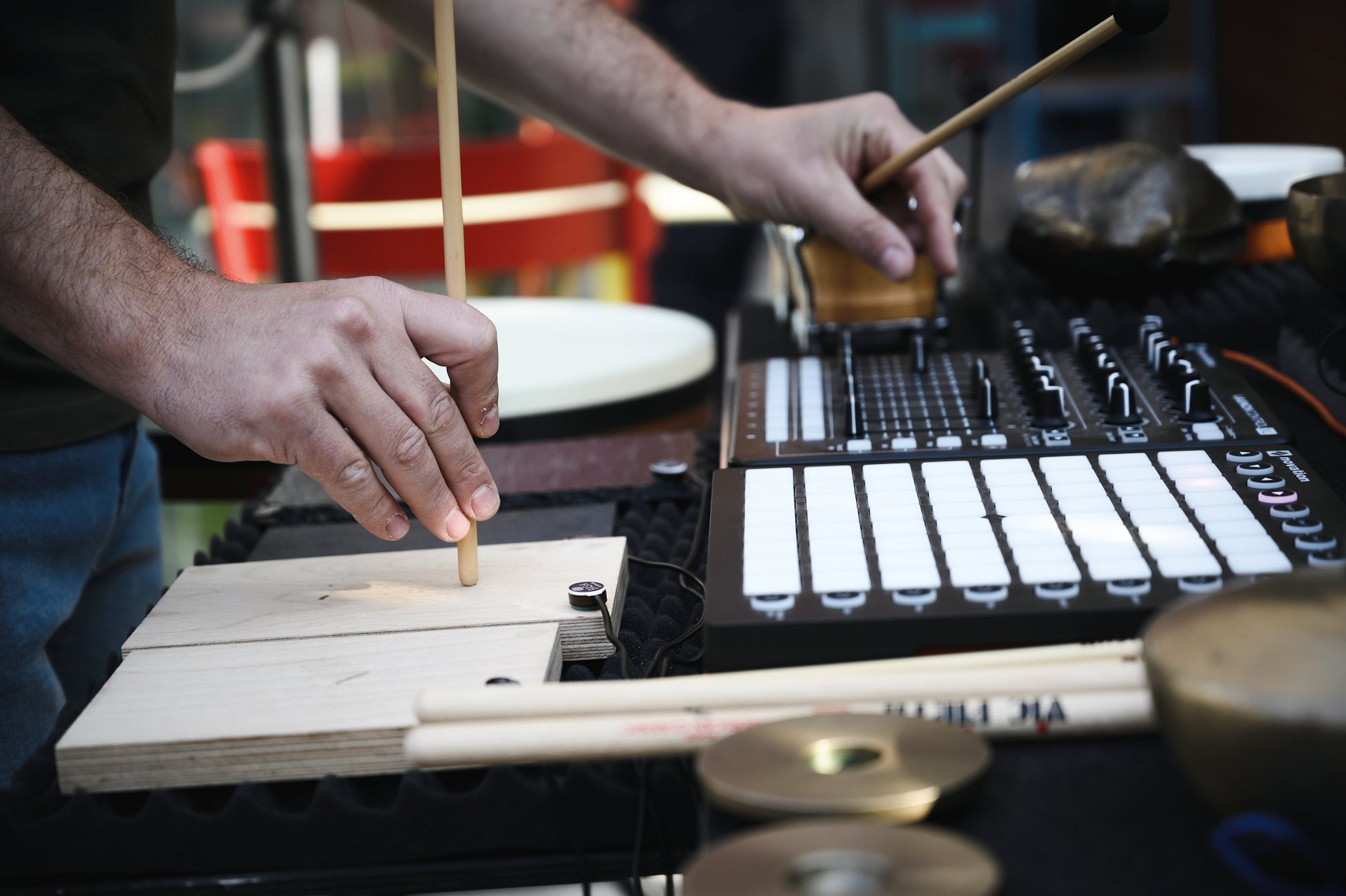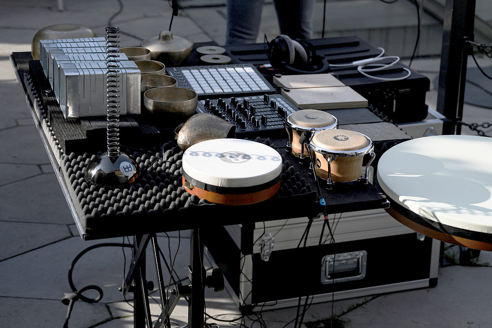 The research project conducted by Tom De Cock and Gerrit Nulens had a precise, concrete, and ambitious goal: the creation of a new musical instrument. This instrument would have new sounds and ways of playing, and it would take the form of a micro-percussion kit connected to an amplification system and sound treatment device.