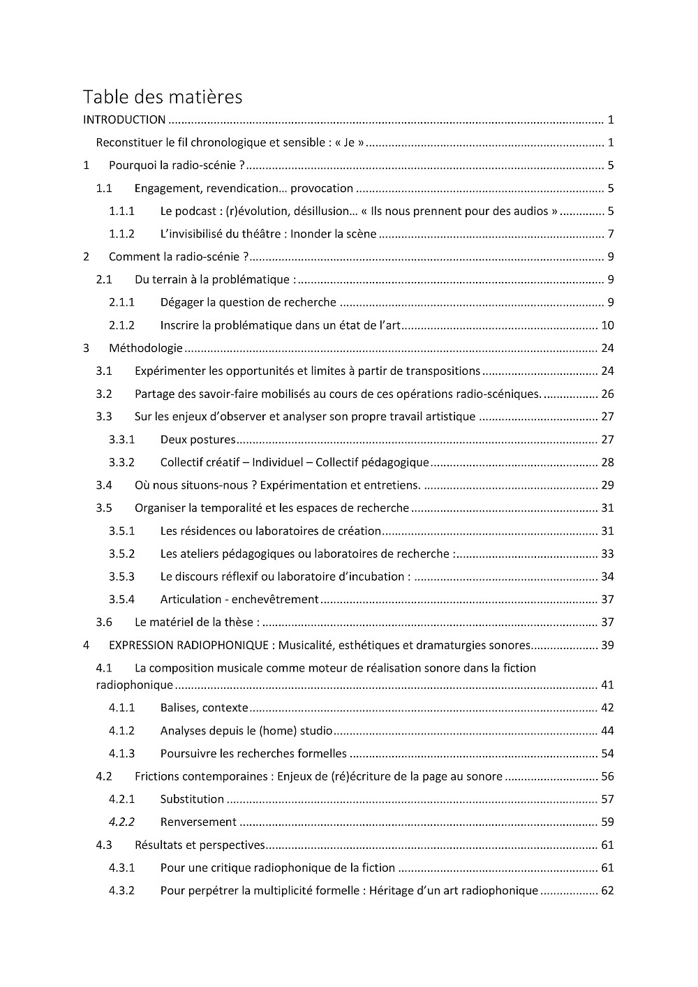 ED20 For radio-stage art : Dramatizing f(r)ictions. — 4. Thesis - table of contents